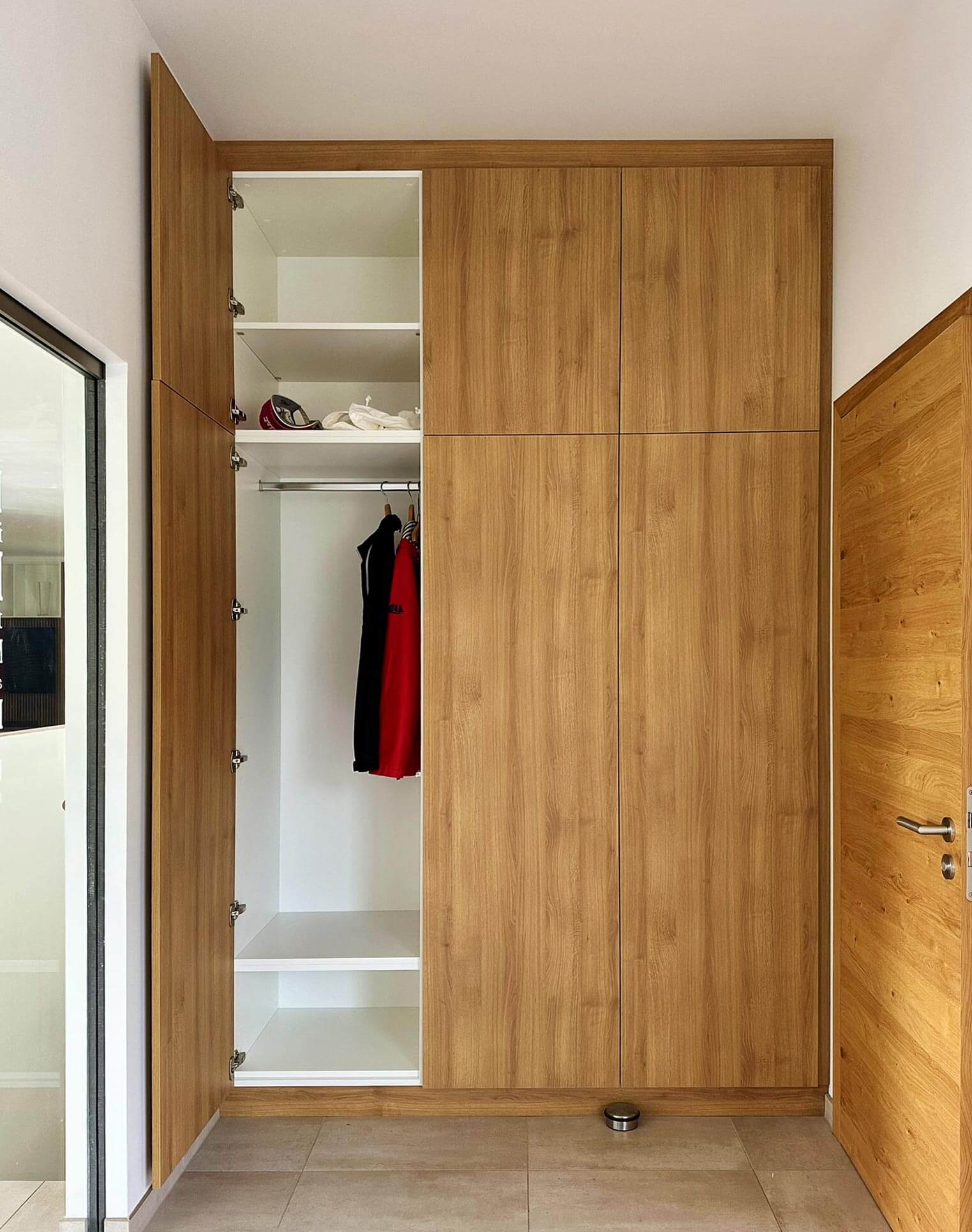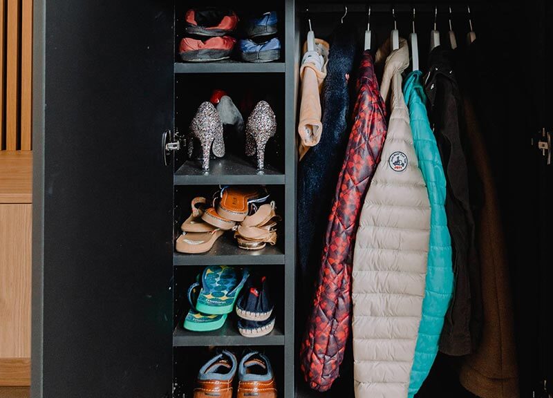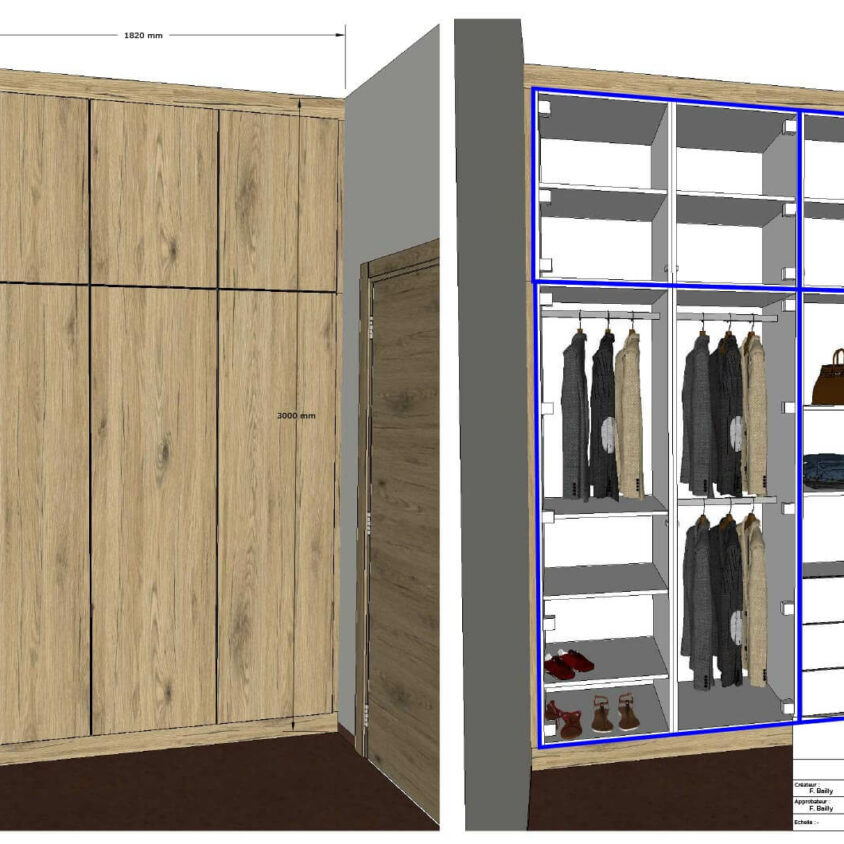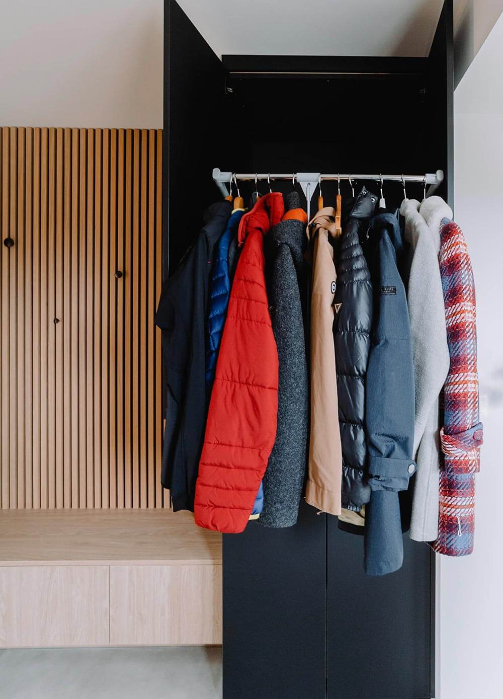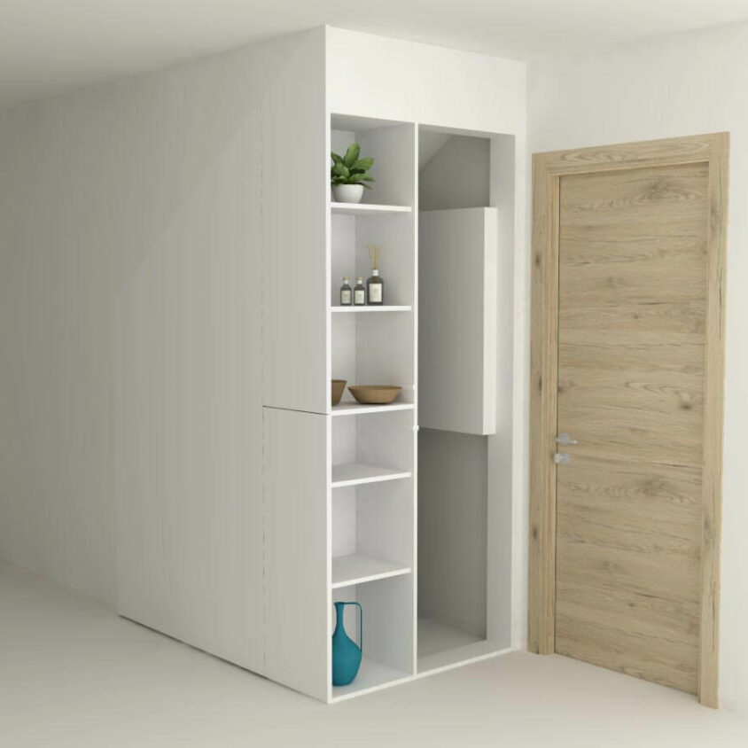 Que votre entrée soit étroite ou non, l’aménagement d’un placard peut être envisagé. Dans un renfoncement, contre un mur, dans un couloir, le sur mesure permet de jouer avec la hauteur jusqu’au moindre millimètre, mais aussi la profondeur, la largeur… Là aussi, la couleur du meuble se veut harmonieuse avec la porte d’entrée.