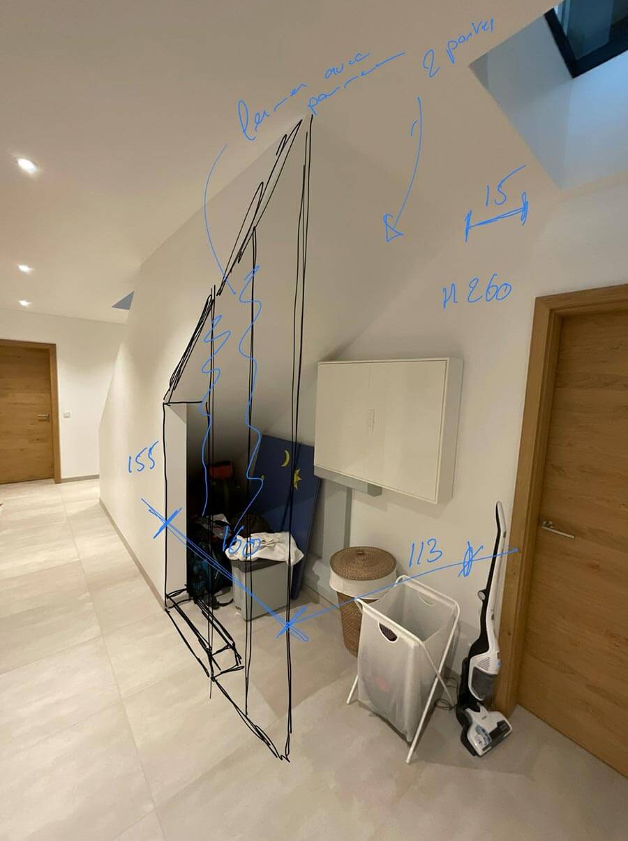 Qui dit entrée sur mesure dit choix d’agencement multiples: placard, étagère, meuble tout hauteur…