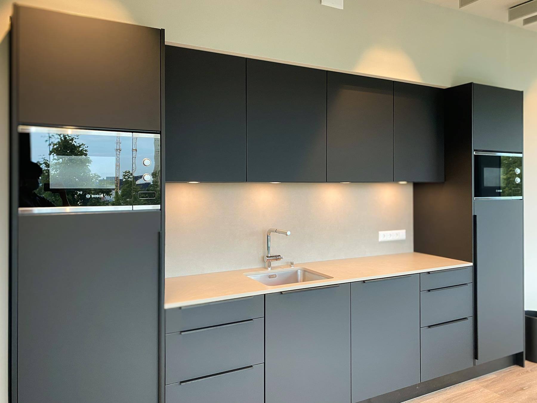Les pauses café ou déjeuner sont des moments importants dans la vie d’une entreprise. Leur allouer un espace intime comme cette cuisine équipée avec tables et chaises, agréable est une démonstration de l’entreprise de vouloir apporter du bien-être à ses salariés. Les pauses sont des moments d’échanges informels qui servent autant les employés que l’entreprise en elle-même.