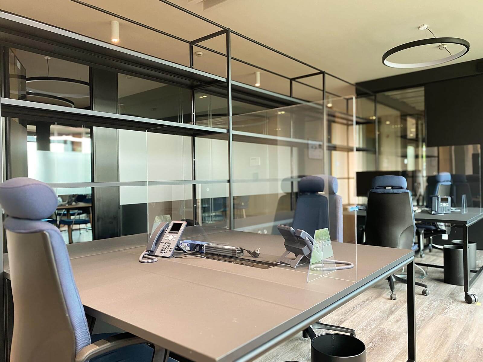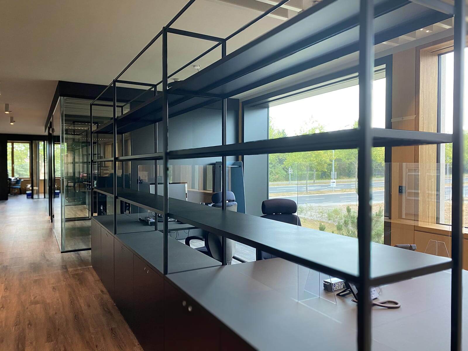 Les bureaux professionnels n’ont pas besoin d’être systématiquement fermés. Des box cloisonnés par des vitres permettent d’apporter une intimité, la discrétion ou la transparence souhaitées, acoustique et/ou visuelle. A l’inverse, des meubles aux parois sans fond procurent une impression d’ouverture et facilitent les échanges et les intéractions humaines.