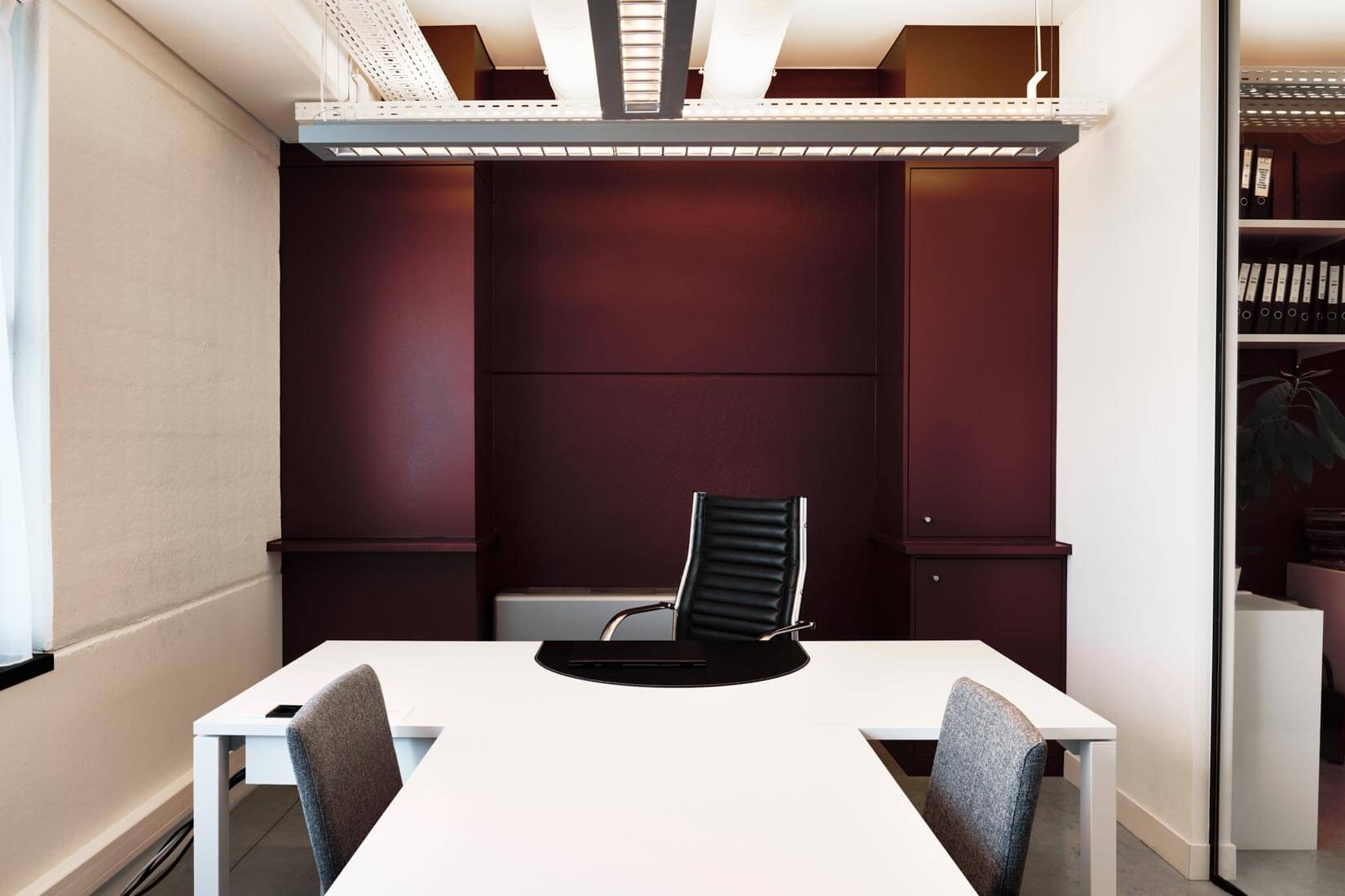 Dans ces espaces “fermés”, les chefs de service, qui ont besoin d’un environnement studieux et confidentiel, la simplicité est de mise. Un bureau au design sobre, une couleur murale lumineuse, un tapis pour la touche fantaisie, et des fauteuils confortables. BeHome Interiors a choisi le mobilier de bureau haut de gamme Bralco pour sa qualité, sa diversité (tables, fauteuils, chaises, bureaux…). Des armoires et placards de rangement complètent la panoplie de mobilier professionnel dans tous les espaces.