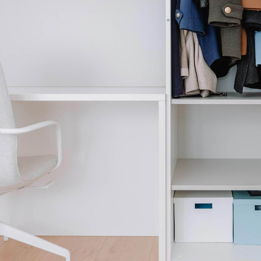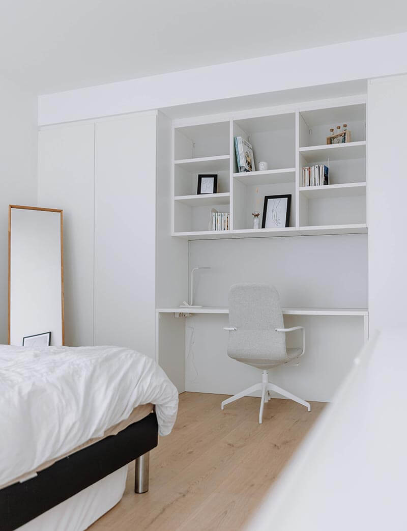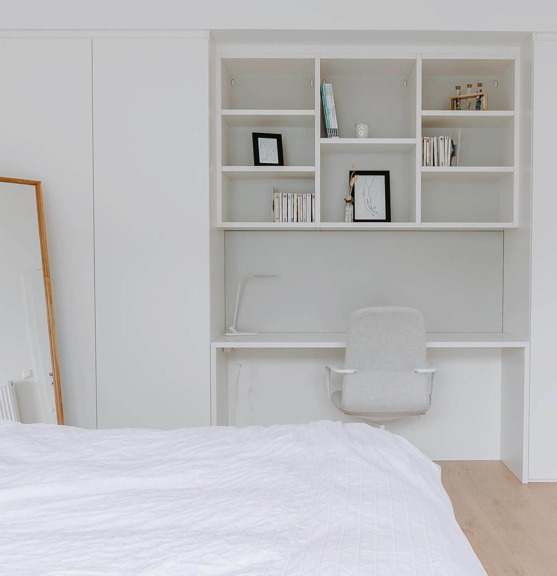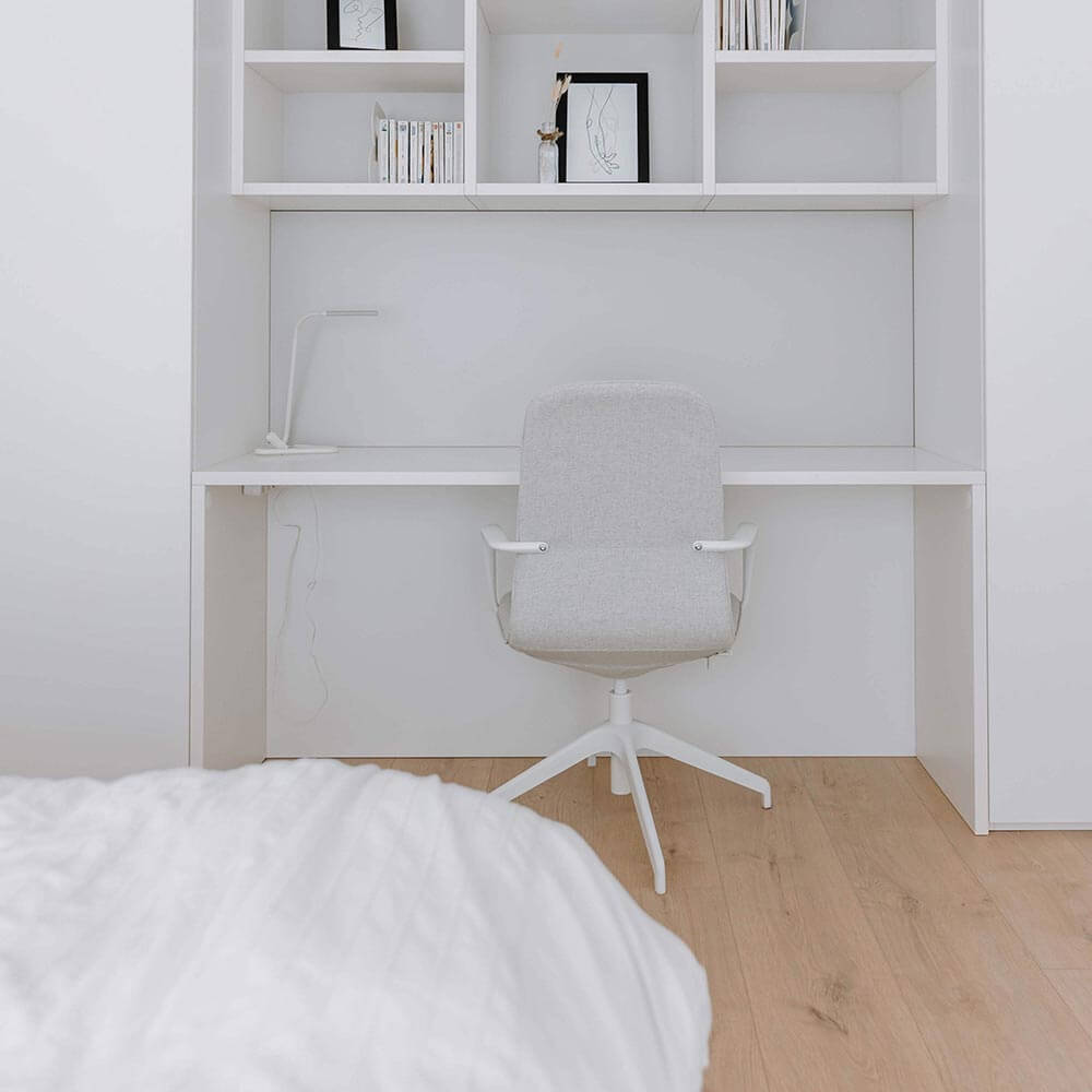 Bureau sur mesure blanc à Dudelange dans chambre blanche