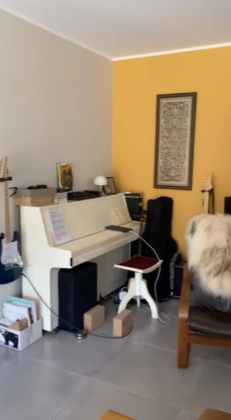 Nous découvrons à l’occasion d’une première visite l’espace concerné par un réaménagement. Une belle pièce à vivre composée d’une cuisine ouverte et d’un grand salon séjour. De beaux meubles aux styles variés ornent la partie salon. Un piano blanc et des guitares occupent un coin de la pièce. Une belle surface au sol peu optimisée on peut le dire.