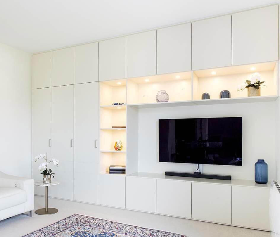 Un grand meuble mural ne serait-il pas du plus bel effet dans votre salon? Optez pour un Meuble TV sur mesure pour donner du corps et du style à votre intérieur. L’équipe de BeHome Interiors est particulièrement friande de ce type d’aménagement mobilier à Genève, qui permet toutes les personnalisation possibles. Contactez-nous pour un premier rendez-vous.