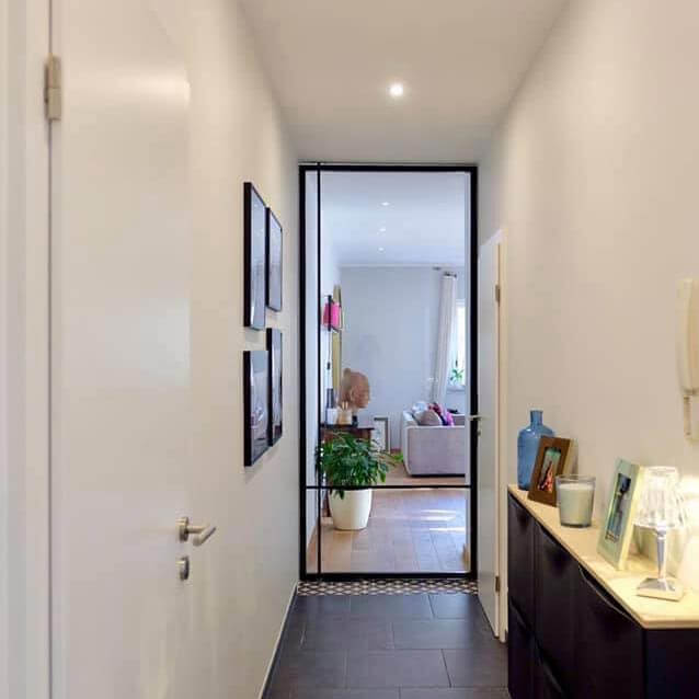 «Quand nous avons discuté la première fois de notre souhait de refaire les portes avec M. Simon de BeHome Interiors Luxembourg, nous souhaitions d’abord changer nos portes anciennes pour quelque chose de plus moderne. Jamais nous n’avions imaginé les remplacer par des portes transparentes. Mais quelle bonne idée! Notre appartement est bien plus lumineux et original.».